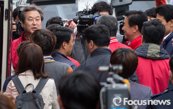 (김포=포커스뉴스) 8일 오후 경기 김포시 사우동 인근에서 김동식 새누리당 김포갑, 홍철호 김포을 후보 합동지원유세에 나선 김무성 대표가 유세를 마친 후 버스로 향하고 있다.