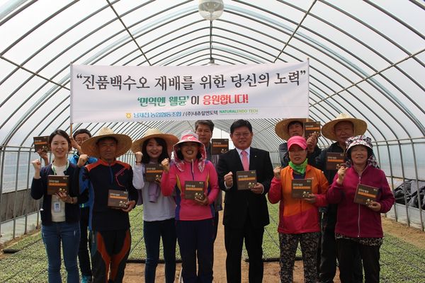 내츄럴엔도텍은 "백수오 파종 시기를 맞아 지난 해 어려움을 딛고 일어서려는 농가를 위해 조금이나마 도움이 될 수 있도록 마음을 전하고 싶었다”며 “앞으로도 농가와의 협력을 지속하면서 믿고 먹을 수 있는 진품 백수오를 생산하기 위해 앞장설 것”이라고 말했다.<사진출처=내츄럴엔도텍>