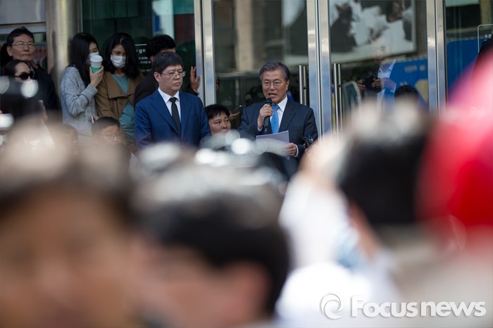 (광주=포커스뉴스) 문재인 더불어민주당 전 대표가 8일 오후 광주광역시 동구 충장로에서 기자회견을 열고 '광주시민께 드리는 글'을 발표 하고 있다. 이날 문 전 대표는 "호남이 자신에 대한 지지를 거두겠다면 미련없이 정치 일선에서 물러나고 대선에도 도전하지 않겠다고" 밝혔다.