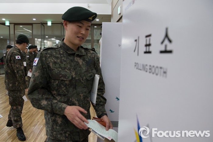 | △ 사전투표소찾은 수방사 장병 |