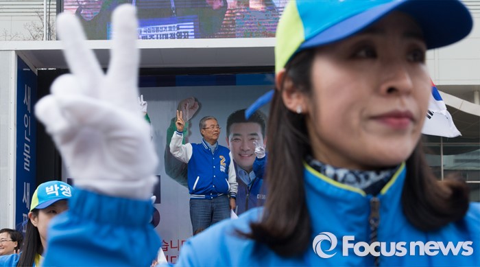 (파주=포커스뉴스) 김종인 더불어민주당 비대위 대표 겸 선대위원장이 8일 오후 경기 파주 금촌역 앞에서 윤후덕 파주시갑 후보와 박정 파주시을 후보 합동지원유세를 하고 있다.