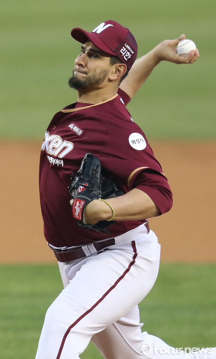 (서울=포커스뉴스) 8일 서울 잠실구장에서 열린 2016 프로야구 넥센-두산 경기에서 1회말 넥센 선발투수 코엘로가 투구하고 있다.