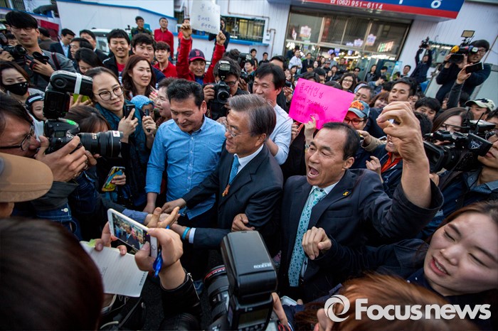 퐁광주=포커스뉴스) 문재인 더불어민주당 전 대표가 8일 오후 광주광역시 광산구 월곡시장을 방문해 시민들과 악수 하고 있다.