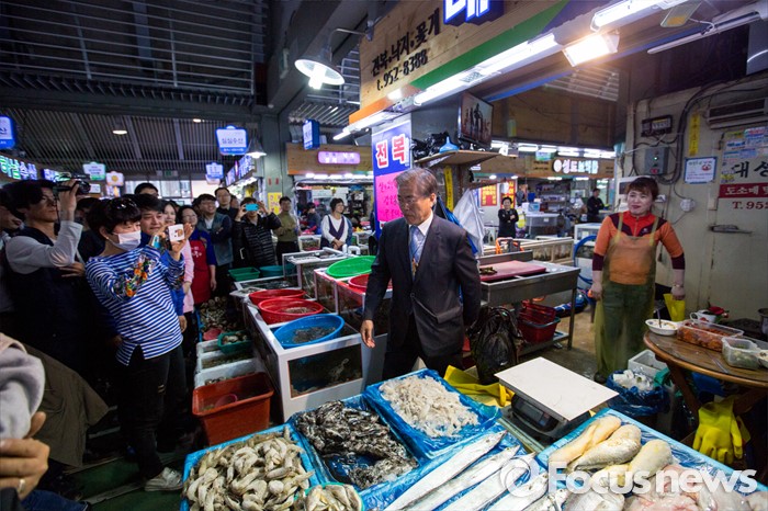 (광주=포커스뉴스) 문재인 더불어민주당 전 대표가 8일 오후 광주광역시 광산구 월곡시장을 방문해 시장을 둘러보고 있다.
