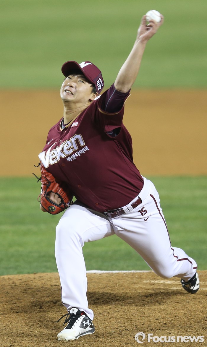 (서울=포커스뉴스) 8일 서울 잠실구장에서 열린 2016 프로야구 넥센-두산 경기에서 넥센 투수 오재영이 6회 등판해 투구하고 있다.