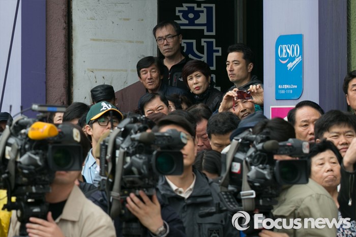 (원주=포커스뉴스) 제20대 국회의원 선거를 나흘 앞둔 9일 오전 강원도 원주시 치악로 남부시장 앞에서 시민들이 김무성 새누리당 대표의 김기선 원주갑, 이강후 원주을 후보 지원유세를 보고 있다.