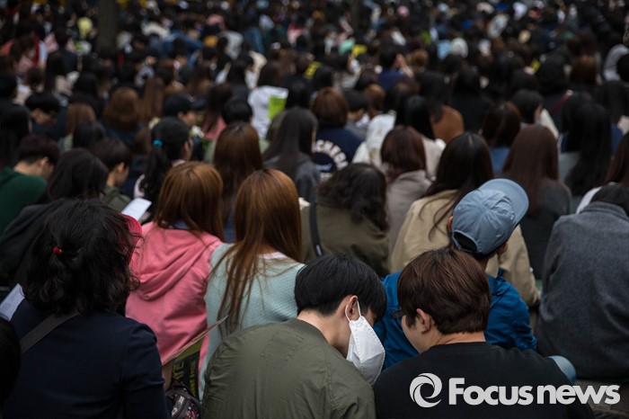 (서울=포커스뉴스) 9일 오후 서울 종로구 영풍문고 앞에서 열린 '한국사 국정화 교과서 폐기 및 공교육 정상화를 위한 전국 초등예비교사 총궐기'에 참가한 대학생들이 집회 중 대화를 나누고 있다.