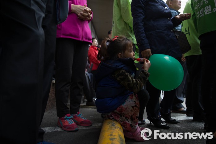 (서울=포커스뉴스) 20대 총선을 3일 앞둔 10일 오후 서울 관악구 관악프라자 인근에서 유권자들이 안철수 국민의당 공동대표와 김성식 관악구갑 후보의 합동유세를 지켜보고 있다.