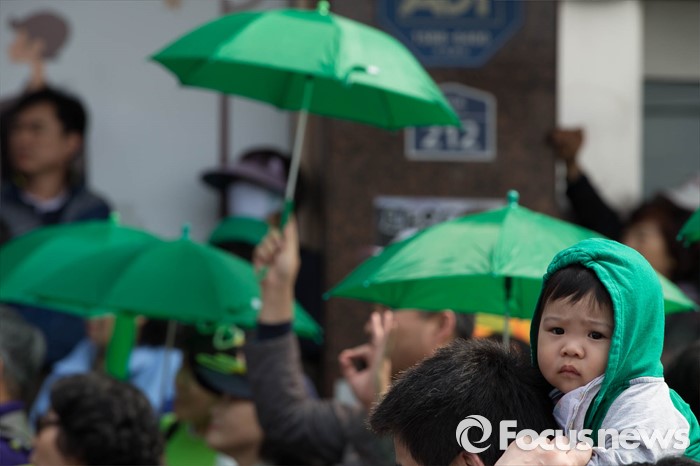 | △ 선거유세 현장에 등장한 초록우산 |