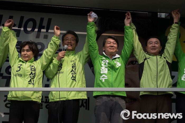 (서울=포커스뉴스) 20대 총선을 3일 앞둔 10일 오후 서울 관악구 관악프라자 인근에서 안철수(오른쪽 두 번째) 국민의당 공동대표가 김성식(왼쪽 두 번째) 관악구갑 후보 지원유세를 하고 있다.