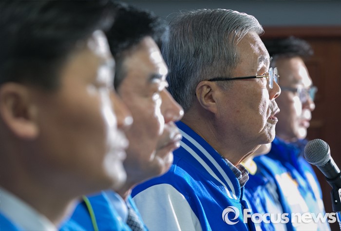 (수원=포커스뉴스) 20대 총선을 이틀 앞둔 11일 오전 수원 장안구 더불어민주당 경기도당 회의실에서 김종인 비대위 대표 겸 선대위원장이 대국민 성명 발표를 하고 있다.