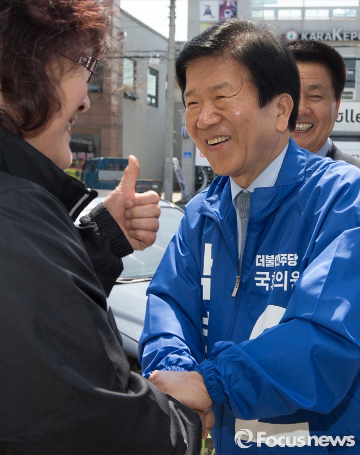(대전=포커스뉴스) 20대 국회의원 선거를 이틀 남긴 11일 오전 대전 서구 흑석네거리에서 박병석 더불어민주당 후보가 시민들과 악수를 하고 지지를 호소하고 있다.