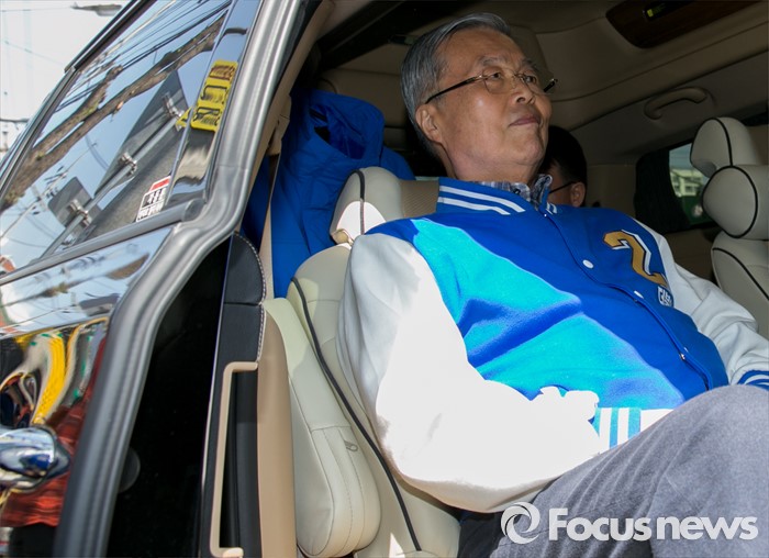 | △ 차량 올라 이동하는 김종인 |