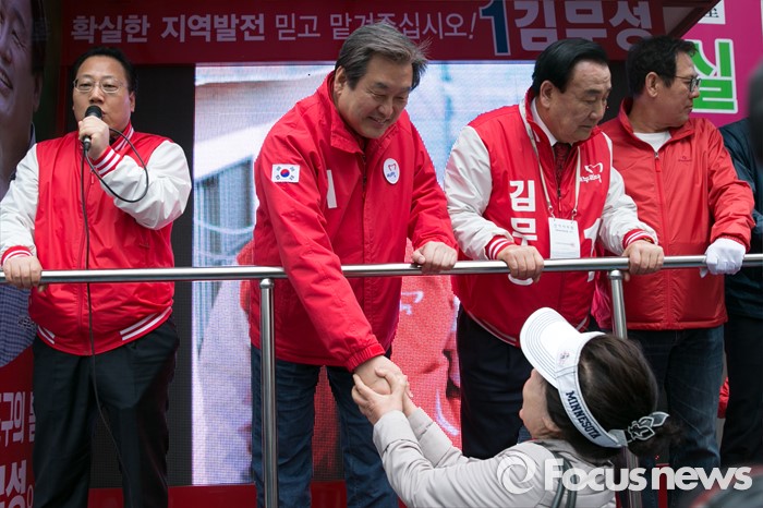 (부산=포커스뉴스) 제20대 총선에서 부산 중구영도에 출마한 김무성 새누리당 대표가 11일 오후 부산 중구 보수동 책방골목에서 유세를 마친 뒤, 시민들과 악수하고 있다.