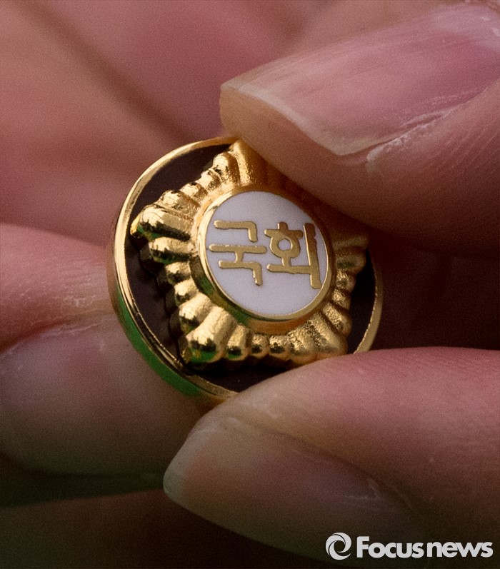 (서울=포커스뉴스) 4.13총선을 이틀 앞둔 11일 오후 서울 여의도 국회에서 20대 국회의원 당선자들이 착용할 배지가 공개되고 있다.