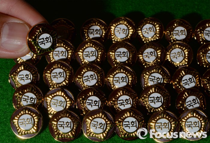 (서울=포커스뉴스) 4.13총선을 이틀 앞둔 11일 오후 서울 여의도 국회에서 20대 국회의원 당선자들이 착용할 배지가 공개되고 있다.