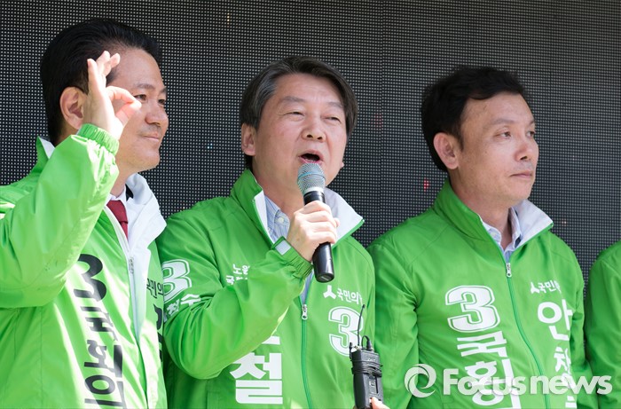 (청주=포커스뉴스) 안철수 국민의당 대표가 11일 오후 충북 청주시 사창사거리에서 20대 국회의원 충북도에 출마한 국민의당 후보의 지지를 호소하고 있다.
