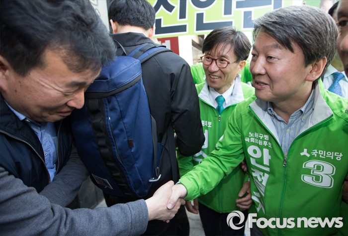 (청주=포커스뉴스) 안철수 국민의당 대표가 11일 오후 충북 청주시 사창사거리에서 20대 국회의원 충북도에 출마한 국민의당 후보의 지지를 호소하며 시민들과 악수를 하고 있다.