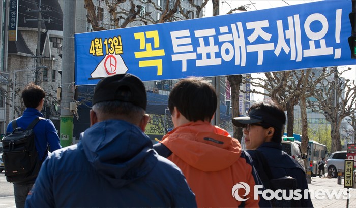 (청주=포커스뉴스) 20대 국회의원 선거를 이틀 앞둔 11일 오후 충북 청주시 복대동에 선거독려 현수막이 걸려져 있다.