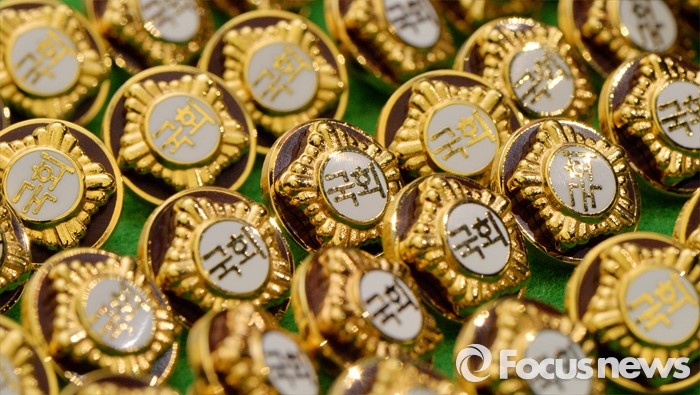 (서울=포커스뉴스) 4.13총선을 이틀 앞둔 11일 오후 서울 여의도 국회에서 20대 국회의원 당선자들이 착용할 배지가 공개되고 있다.