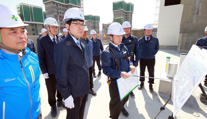 (세종=포커스뉴스) 고영선 고용노동부 차관이 11일 오후 세종시 아파트건설현장을 방문, 건설 근로자들의 안전관리실태를 점검, 건설현장 관계자들로부터 애로사항을 청취하고 있다. <사진제공=고용노동부>