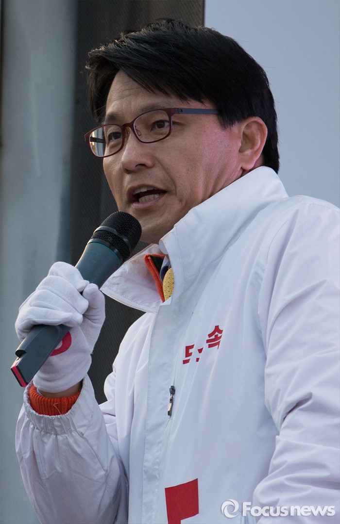 (인천=포커스뉴스) 20대 총선을 이틀 앞둔 11일 오후 인천 남구 제물포역 앞에서 윤상현 무소속 남구을 후보가 유권자에게 지지호소 하고 있다.