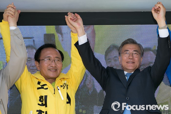 | △ 문재인·노회찬, 두 손 높이 |