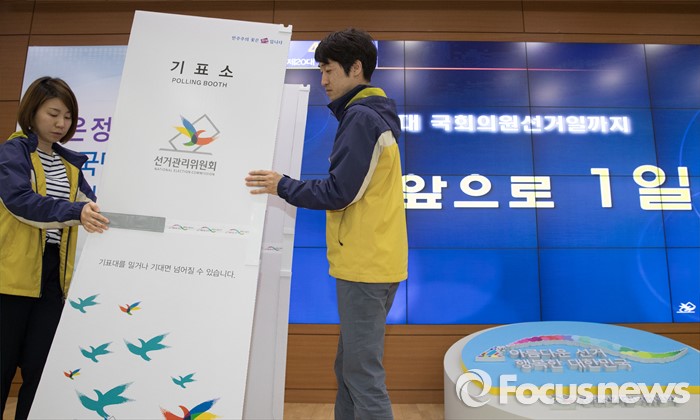 (과천=포커스뉴스) 2016 제20대 국회의원선거를 하루 앞둔 12일 오전 경기도 과천시 중앙선거관리위원회에 설치된 상황실에서 직원들이 업무를 보고 있다.