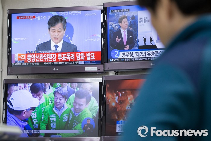 (과천=포커스뉴스) 2016 제20대 국회의원선거를 하루 앞둔 12일 오전 경기도 과천시 중앙선거관리위원회에서 직원들이 업무를 보고 있다.