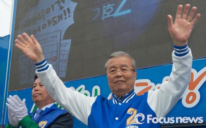 (청주=포커스뉴스) 국회의원 선거를 하루 앞둔 12일 오전 충북 청주 상당구 육거리시장 앞에서 김종인 더불어민주당 대표가 청주지역 후보의 지지를 호소하고 있다.