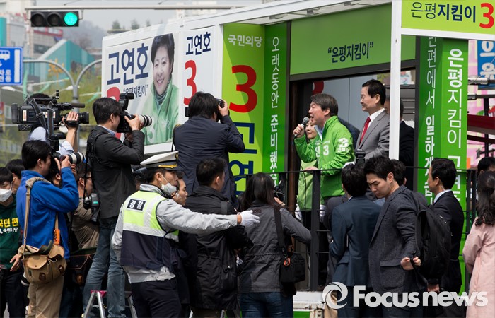 (서울=포커스뉴스) 안철수 국민의당 상임공동대표가 12일 오전 서울 은평구 불광역 8번 출구 앞에서 고연호 은평구을 후보 지원유세를 하고 있다.