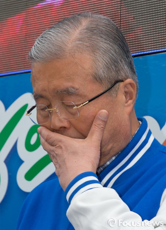 (청주=포커스뉴스) 국회의원 선거를 하루 앞둔 12일 오전 충북 청주 상당구 육거리시장 앞에서 김종인 더불어민주당 대표가 청주지역 후보의 지원유세 중 잠시 생각에 잠겨 있다.
