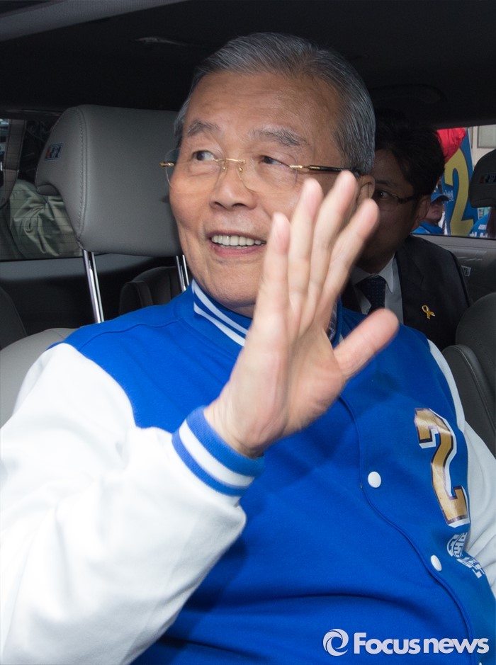 (청주=포커스뉴스) 국회의원 선거를 하루 앞둔 12일 오전 충북 청주 상당구 육거리시장 앞에서 김종인 더불어민주당 대표가 청주지역 지원유세를 마치고 다음 유세지역으로 이동하며 손 인사를 하고 있다.