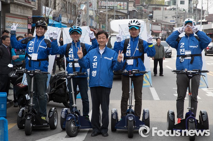 | △ 선거운동원들과 포즈 취하는 진영 후보 |