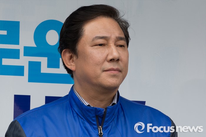 | △ 김종인 대표 지지호소 듣는 김병기 후보 |