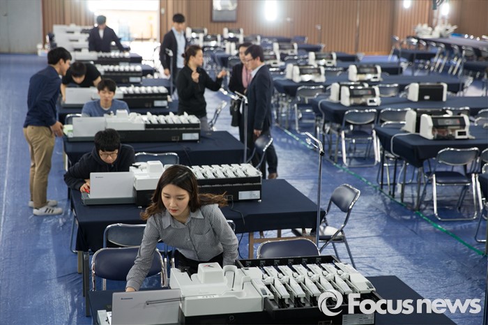 (서울=포커스뉴스) 4.13총선을 하루 앞둔 12일 오후 서울 영등포구 여의도고등학교 체육관에 마련된 개표소에서 선관위 관계자들이 투표지분류기를 점검하고 있다.