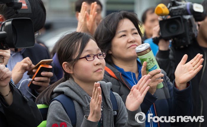 | △ 지지호소 발언 지켜보는 미래의 유권자 |