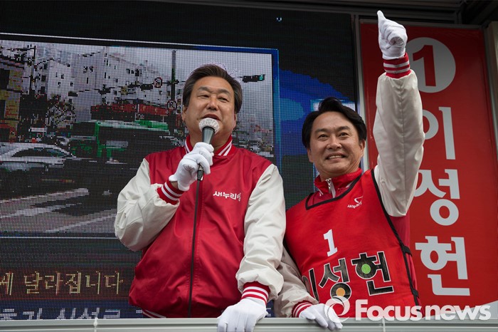 | △ 김무성, 이성헌 후보 지원사격 |