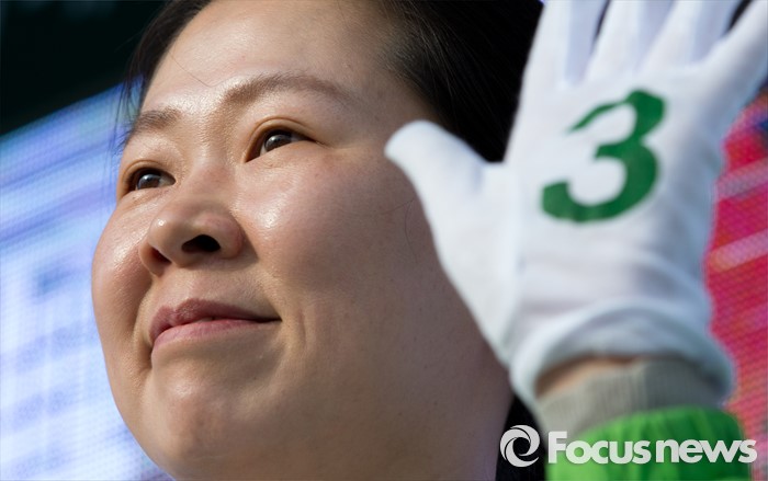 (광주=포커스뉴스) 4.13총선을 하루 앞둔 12일 오후 광주 광산구 타이어테크 수완점 앞에서 권은희 국민의당 광산구을 후보가 선거유세를 하고 있다.