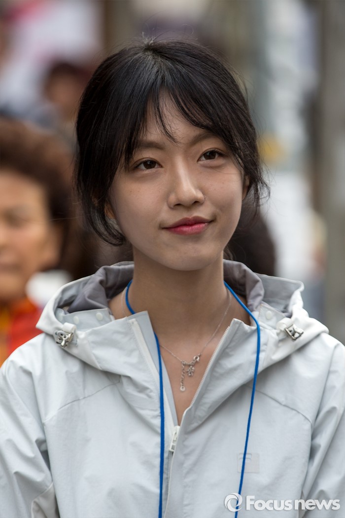 (대구=포커스뉴스) 12일 오후 대구광역시 동구 방촌시장에서 유승민 무소속 대구 동구을 후보 딸 유담 씨가 유 후보의 유세를 듣고 있다.