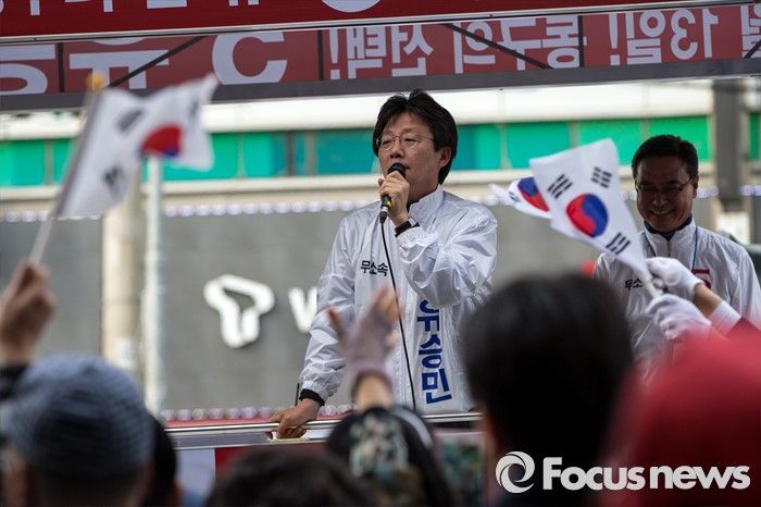 (대구=포커스뉴스) 유승민 무소속 대구 동구을 후보가 12일 오후 대구광역시 동구 방촌시장에서 유세를하며 유권자들에게 한 표를 호소 하고 있다.