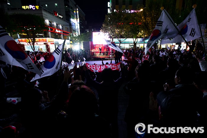 (대구=포커스뉴스) 김문수 새누리당 대구 수성구갑 후보가 12일 오후 대구광역시 수성구 신매광장에서 유세를하며 유권자들에게 한 표를 호소 하고 있다.