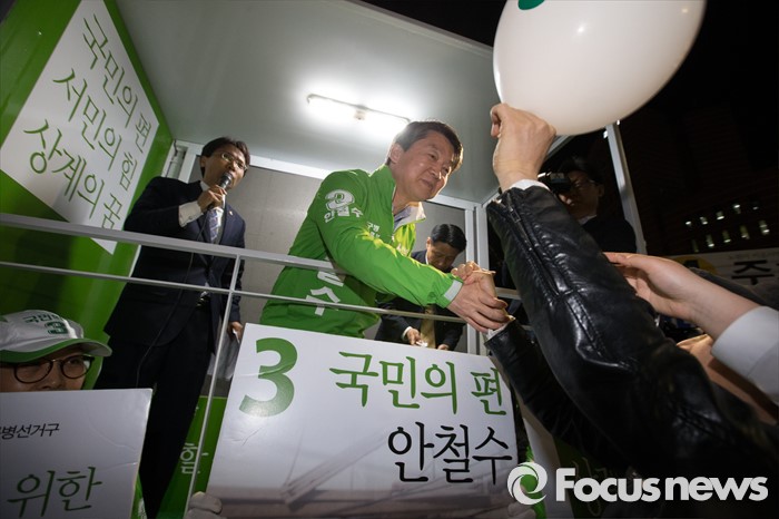 (서울=포커스뉴스) 4.13총선을 하루 앞둔 12일 오후 서울 노원구 롯데백화점 정문 앞에서 안철수 국민의당 상임공동대표가 막바지 선거 유세를 하고 있다.