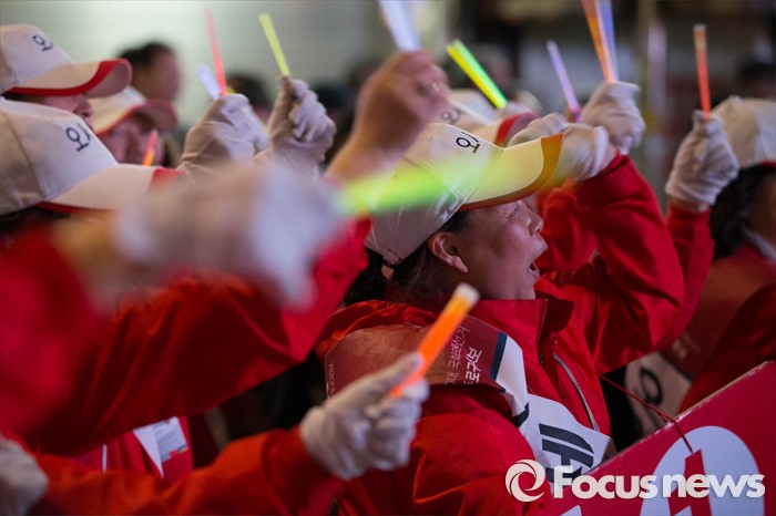 | △ 야광봉들고 선거유세 |