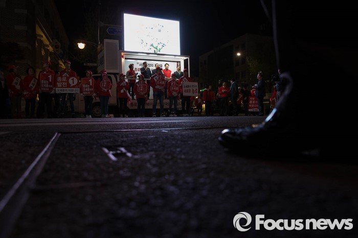 | △ 오세훈 후보 선거유세 지켜보는 유권자 |