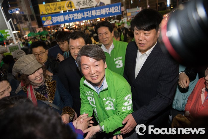 (서울=포커스뉴스) 4.13총선을 하루 앞둔 12일 오후 서울 노원구 롯데백화점 정문 앞에서 안철수 국민의당 상임공동대표가 막바지 선거 유세를 하고 있다.