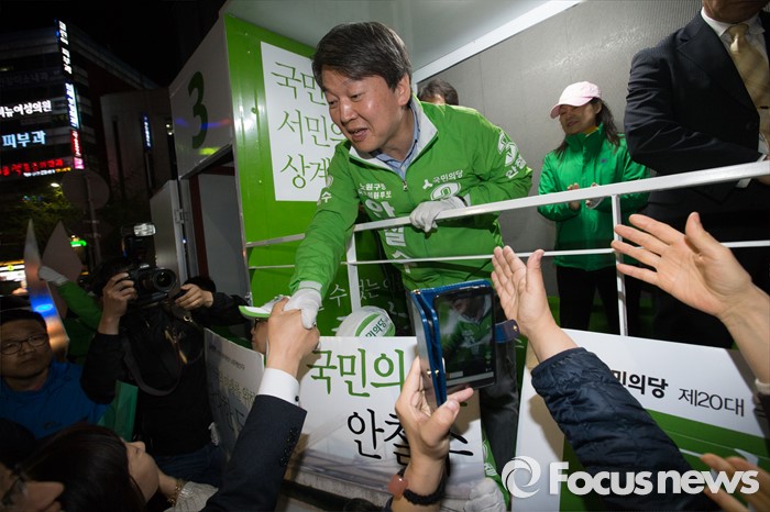 (서울=포커스뉴스) 4.13총선을 하루 앞둔 12일 오후 서울 노원구 롯데백화점 정문 앞에서 안철수 국민의당 상임공동대표가 막바지 선거 유세를 하고 있다.