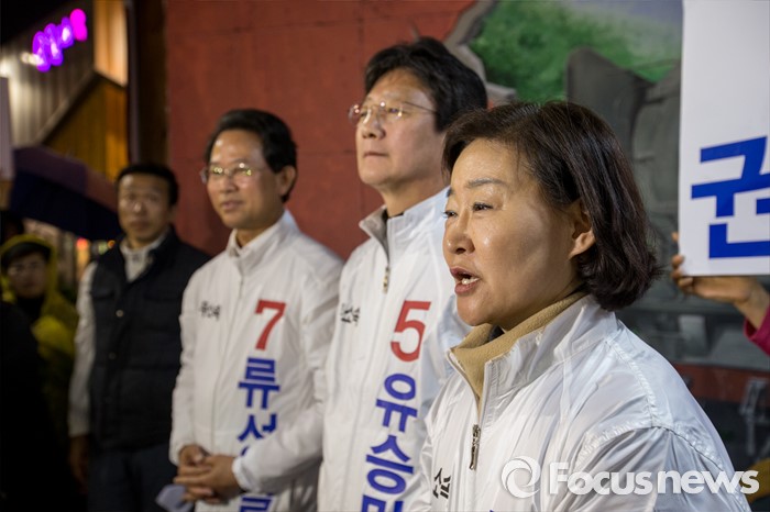 (대구=포커스뉴스) 권은희 무소속 대구 북구갑 후보가 12일 오후 대구광역시 동구 평화시장 닭똥집골목에서 마무리 합동유세를하며 지지자들에게 감사 인사를 전하고 있다.