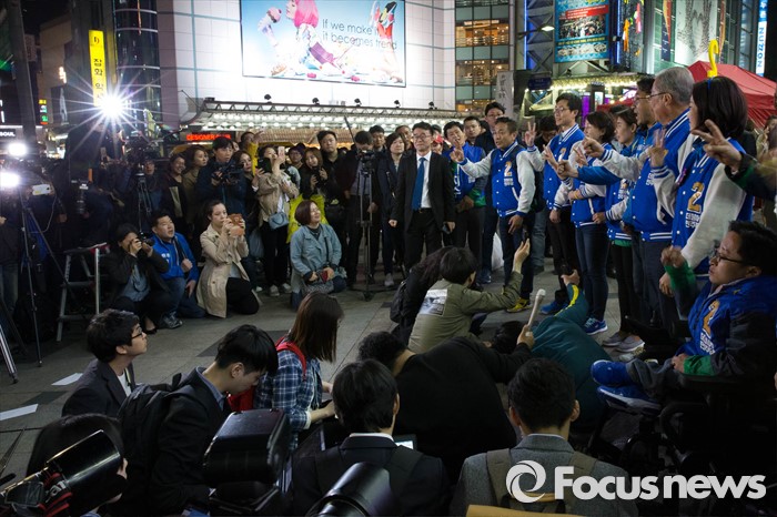 (서울=포커스뉴스) 20대 총선을 하루 앞둔 12일 오후 서울 중구 신평화시장 일대에서 김종인 더불어민주당 비상대책위원회 대표를 비롯한 비례대표 후보들과 마지막 선거유세를 하고 있다.
