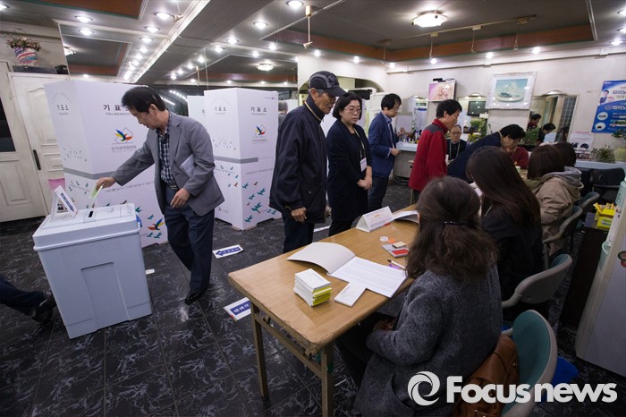 (서울=포커스뉴스) 제20대 국회의원선거일인 13일 오전 서울 서대문구 뉴헤어미용실에 위치한 홍은제2동 제2투표소에서 유권자들이 투표하고 있다.